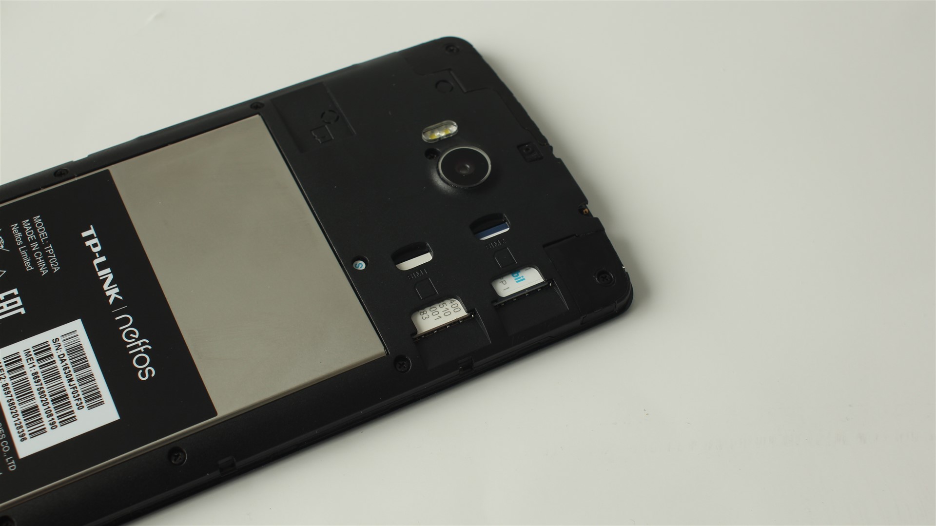 TP-Link Neffos C5 Max nu este un smartphone cu carcasă unibody, ceea ce mărturisesc că apreciez. Capacul spate se desface ușor, însă asta, din păcate, nu înseamnă că poți scoate și bateria din locașul său. Acumulatorul este fix. Avem doar acces la sloturile celor două cartele sim și la cel pentru card de memorie microSD, cu slot dedicat.