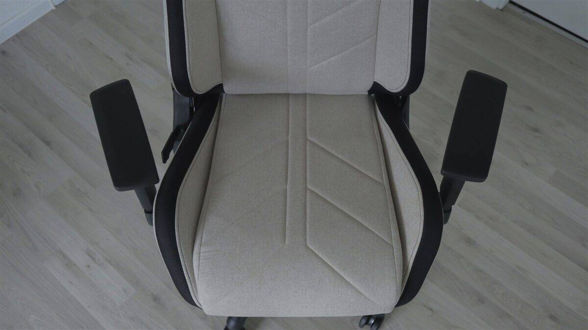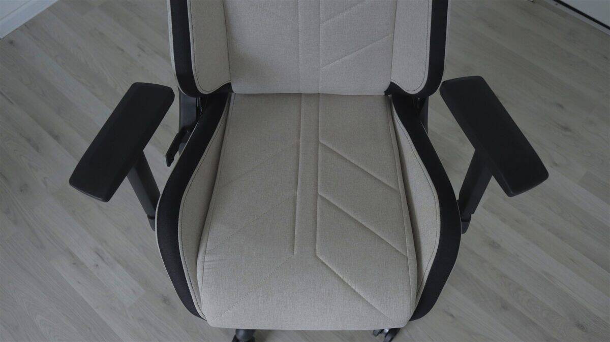 Calitatea de fabricație este mai mult decât ok, dar nimic nu lasă neapărat impresia de premium. Avem elemente solide de structură, în timp ce materialul textil este fin. Culoarea bej arată elegant, dar trebuie să ținem cont că o nuanță atât de deschisă este mai predispusă la a se murdări, iar anumite pete vor fi mai vizibile. În fine, nu este ca și cum nu-ți asumi asta încă de când comanzi un asemenea scaun.