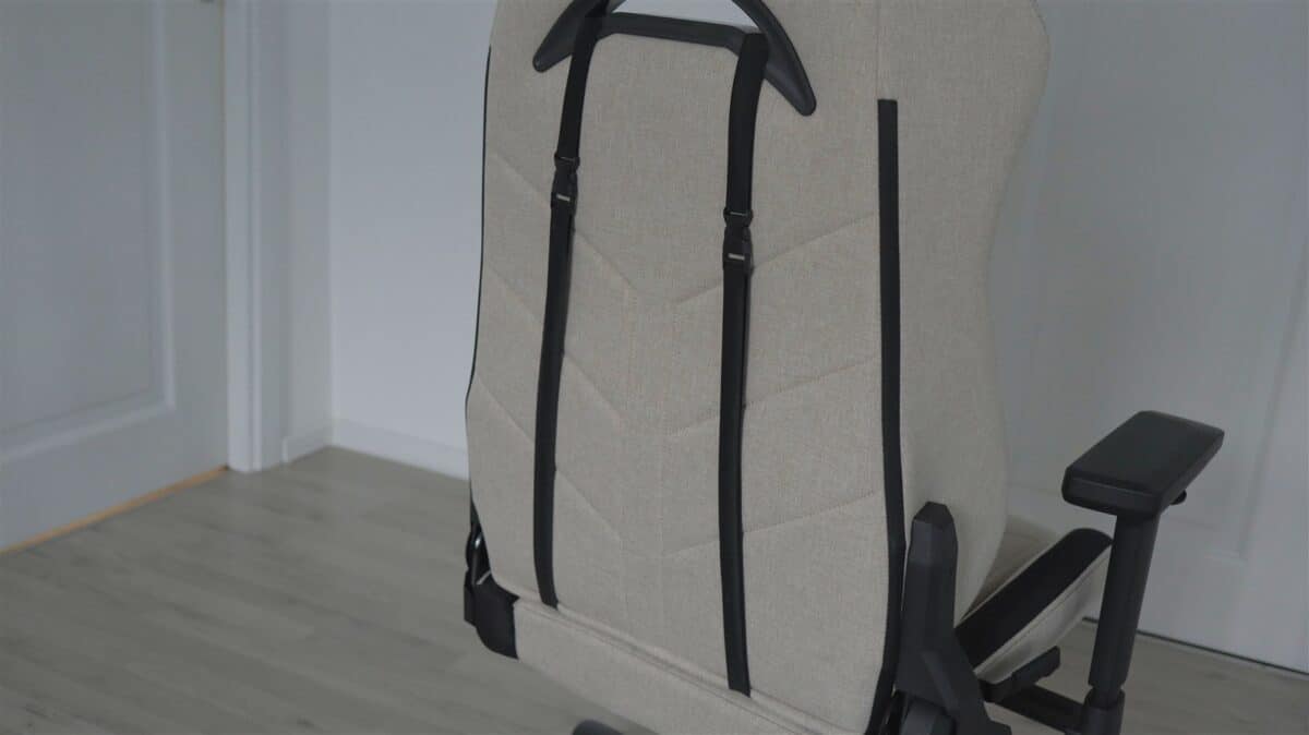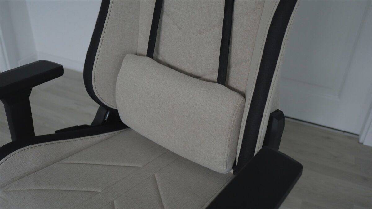 Pernița pentru tetieră, precum și cea pentru zona lombară, pot fi folosite sau nu. Cea pentru tetieră nu mi se pare că stă cel mai fix pe poziția sa, din cauză că scaunul este „ascuțit” în sus pe zona unde trebuie pusă acea perniță și astfel, fiindcă breteaua cu care se prinde este elastică, tendința este să se ducă în sus. Nici pernița pentru zona lombară nu stă mereu fix acolo unde o așezi, dar nu este ceva grav.