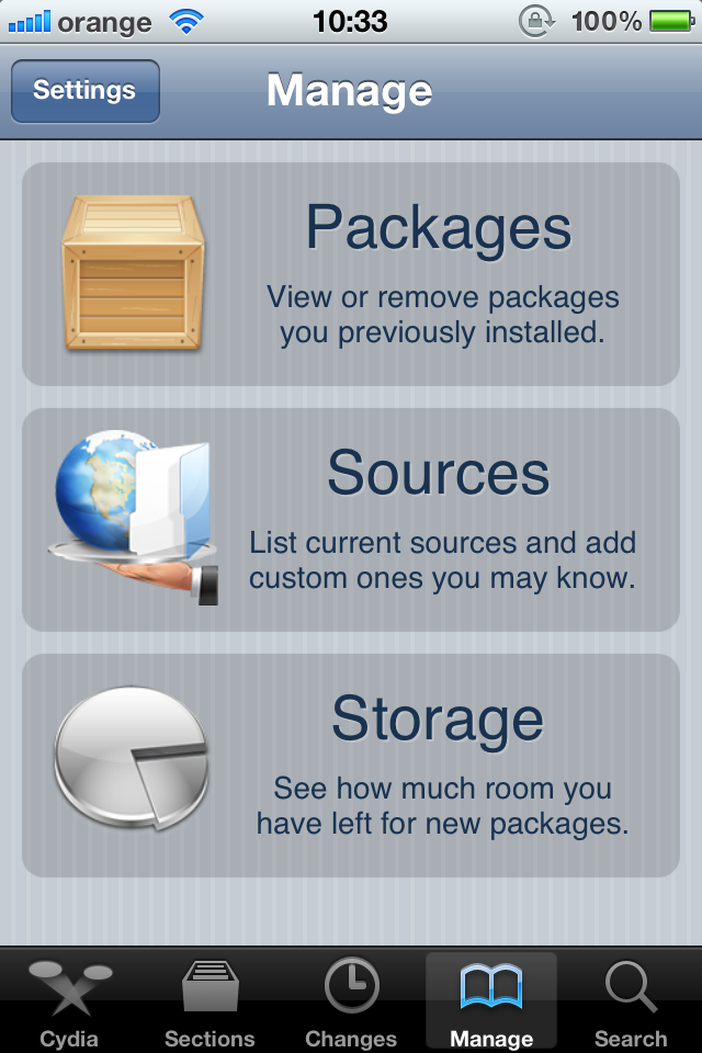 Pasul 1: Deschideti Cydia si selectati tabul „Manage”;