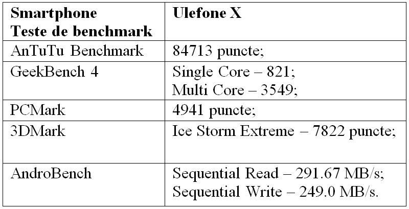 Iată şi ce rezultate a obţinut Ulefone X în testele de benchmark: