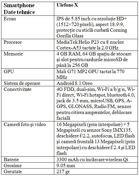 Ulefone X se evidenţiază pe foaie prin display-ul FullView cu breton, camera foto duală (16+5 megapixeli), încărcare wireless în standardul Qi, deblocare facială şi Android 8.1 Oreo într-o variantă foarte apropiată de cea stock.
