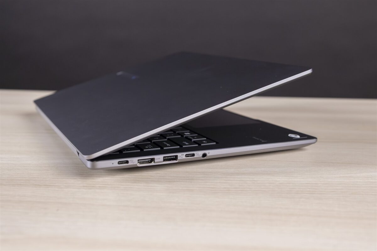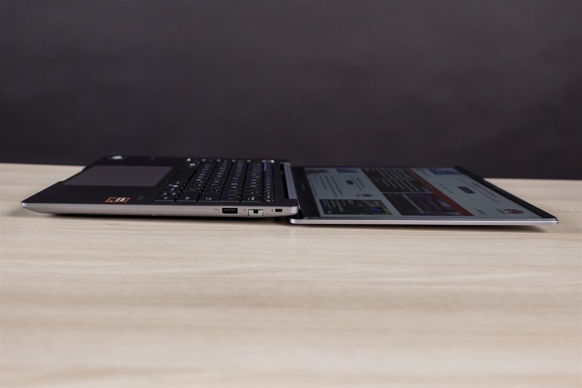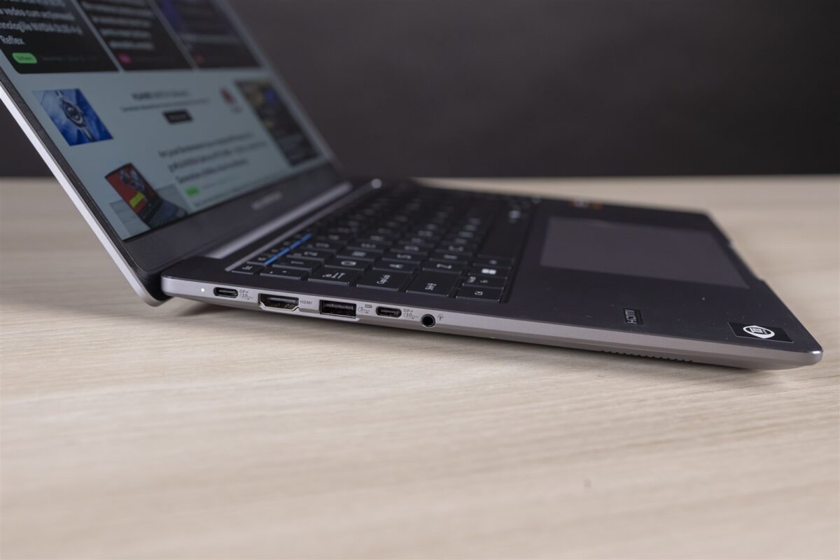 Laptopul include și o cameră IR compatibilă cu Windows Hello, alături de camera video Full HD completată de un software care permite estomparea fundalului sau ajustarea cadrului, iar la securitate avem senzor de amprentă integrat în butonul Power.