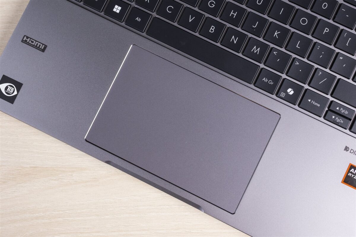 Tastatura se prezintă cu taste ușor concave, o cursă de 1.5 mm și un spațiu corect între butoane. Touchpad-ul din sticlă este peste medie ca dimensiuni, se întinde pe mare parte din zona dintre tastatură și marginea de jos, fapt care ajută la o navigare precisă, da și confortabilă.