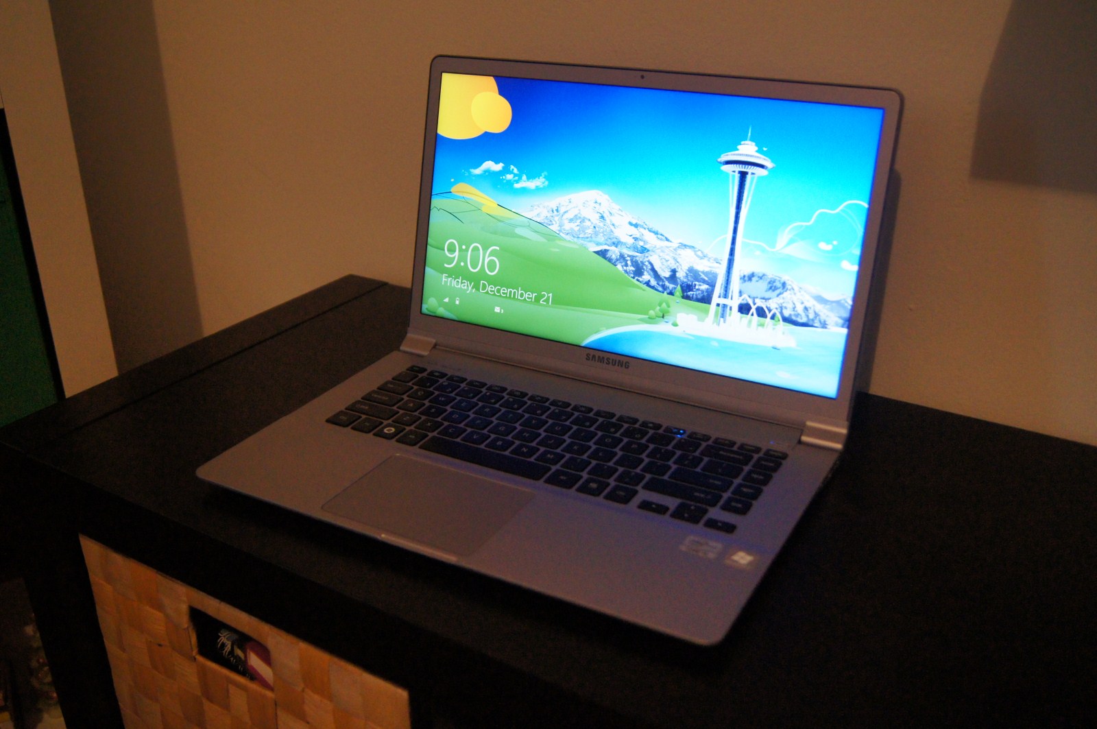La nivel de aplicații vă dați seama că dacă a fost pus Windows 8, nu au mai fost păstrate aplicațiile puse de Samsung pe Windows 7. Pornește rapid din stand-by cât și de la zero. Sub 10 secunde spre a boota pe ecranul de start și sub 2 secunde când iese din stand-by. Aceste performanțe sunt posibile, mai ales, prin intermediul SSD-ului încorporat.