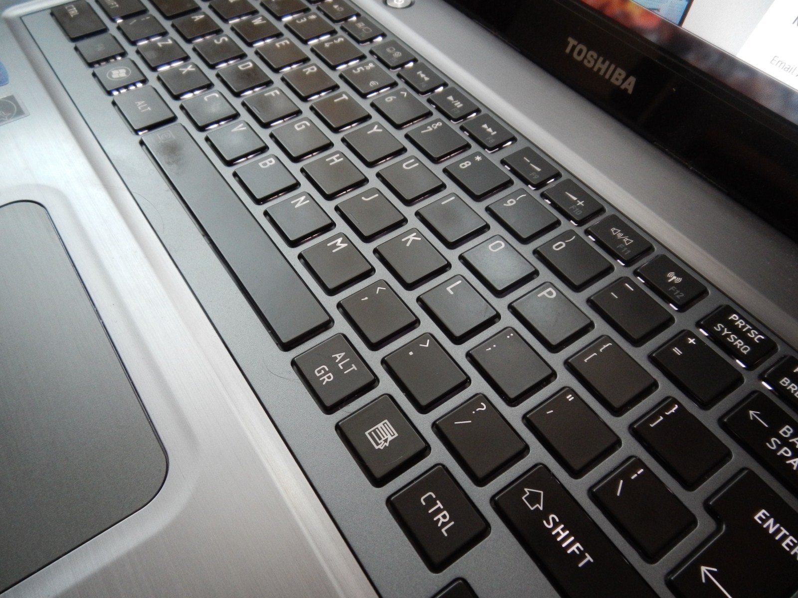 Una dintre primele tastaturi de pe un laptop Toshiba care mi-a plăcut de la început. Este ergonomică, fără numpad, iluminată, literele și simbolurile de pe taste sunt poziționate drept, tastele sunt clar delimitate, fabricate dintr-un fel de silicon care place la atingere și te îmbie să tastezi cât mai repede. Tastele direcționale au fost dispuse separat și sunt ușor de accesat în vreun joc sau în documentele de tip office (word, excel – știu persoane care le folosesc pentru un spor de viteză în dauna mouse-ului).
