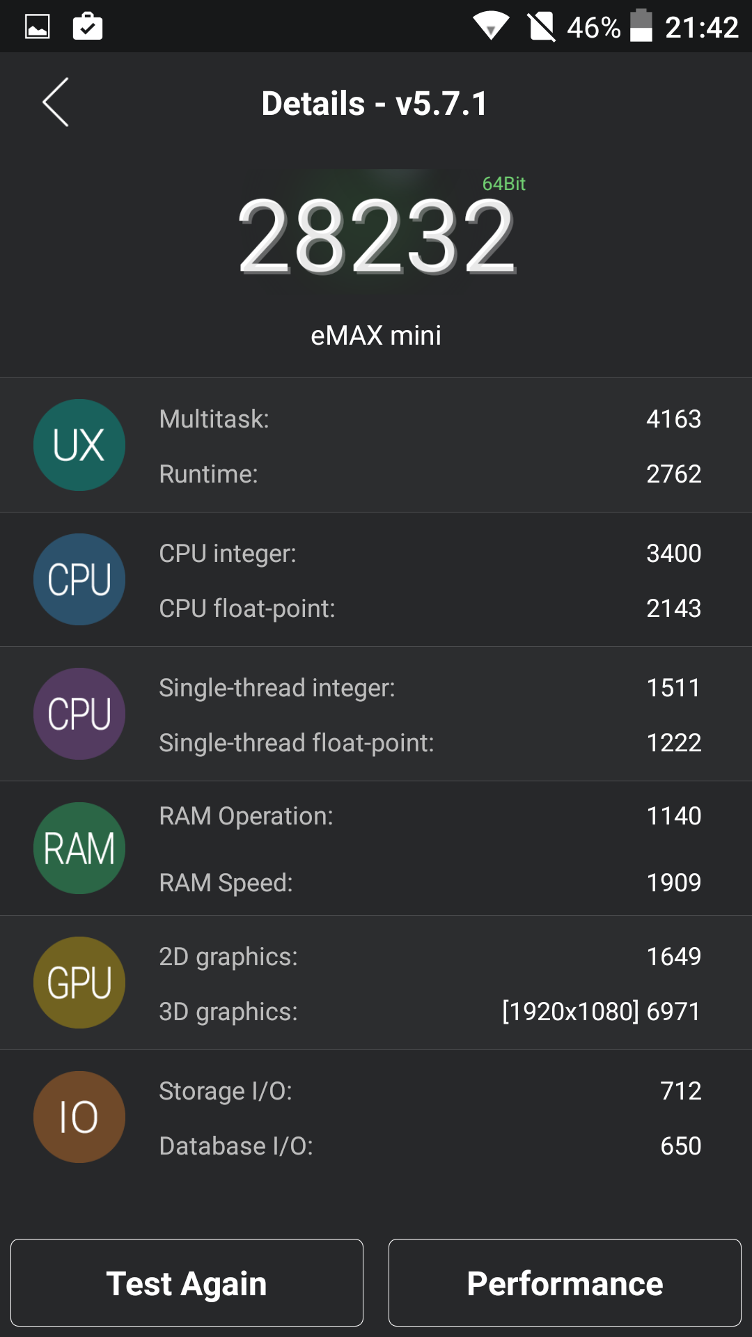UMi eMax Mini a fost scos din zona sa de confort prin rularea câtorva jocuri mai solicitante: Need For Speed No Limits, FIFA 2016, Subway Surf sau Asphalt 8. Telefonul le duce decent, de obicei la nivel mediu. Nu impresionează, dar nici nu dezamăgeşte. În momente foate complexe, procesorul Snapdragon 615 îşi arată limitele.