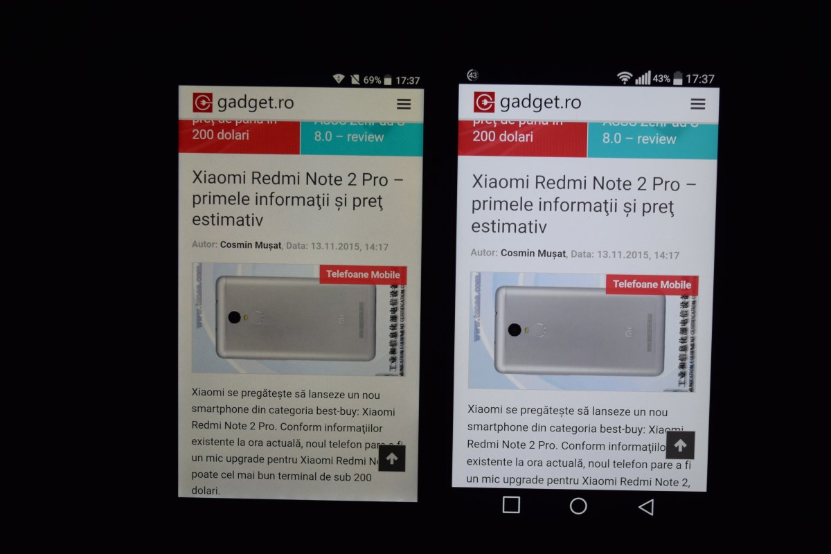 Luminozitate 100% între UMi eMax Mini vs LG G2