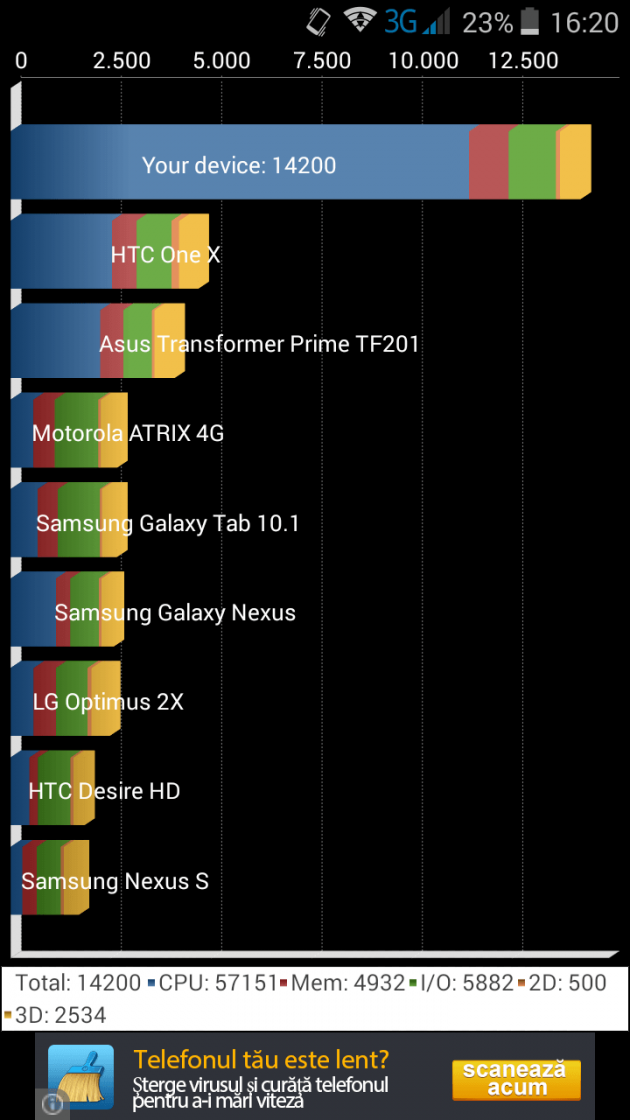 În condiții medii de utilizare, cu luminozitatea pe Auto și cu puțină grijă poți atinge o zi de autonomie. Însă, oricum ar fi, acumulatorul merita o capacitate mai mare, de cel puțin 2500 mAh.