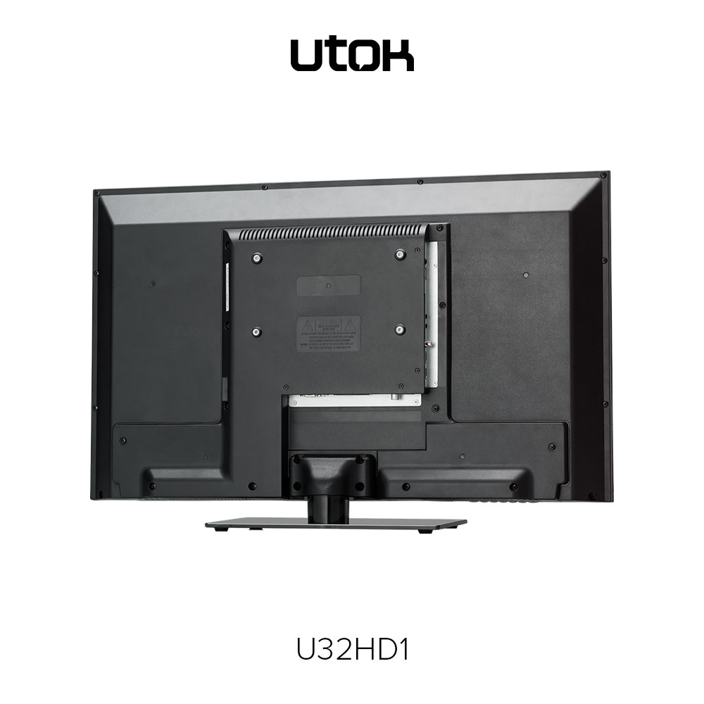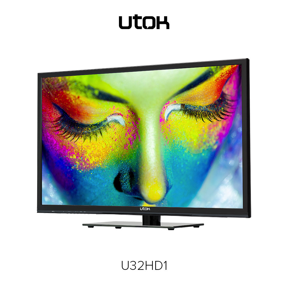 UTOK U32HD1 – display LED cu diagonală de 32 inci (81 cm) şi rezoluţie HD (1366 x 768 pixeli), sistem audio 3D Surround, tuner DVB-T2, elemente de conectivitate: HDMI, VGA (D-Sub), EuroSCART, Audio-In, Video Composit, USB și CI+ şi o greutate de 4.5 Kg fără stand.