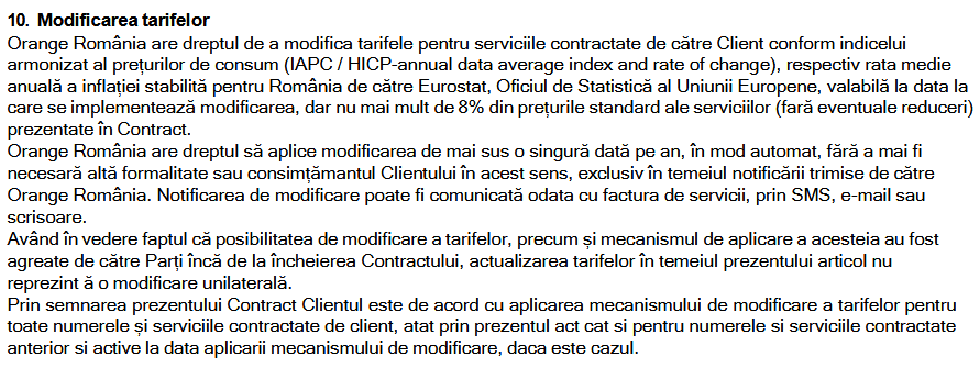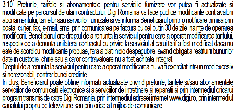 Important de menţionat este că, deoarece ai fost informat încă de la început de existenţa acestei clauze, actualizarea tarifelor prin activarea acestei clauze nu se consideră o modificare unilaterală.
