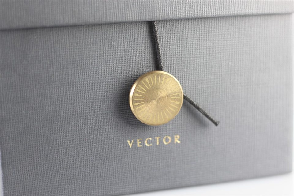 În pachetul de forma unui cub dați de smartwatch, cablul magnetic pe 4 pini ce permite încărcarea acumulatorului încorporat, certificatul de garanție. Se observă atenția la detalii, de la cutia cu buton metalic în care Vector Watch sosește și până la device-ul propriu-zis.