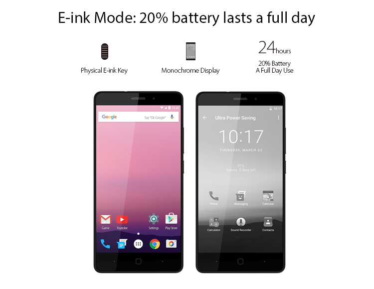 5. Modul E-ink ce promite că telefonul cu 20% din acumulator se duce spre 1 zi întreagă de autonomie;