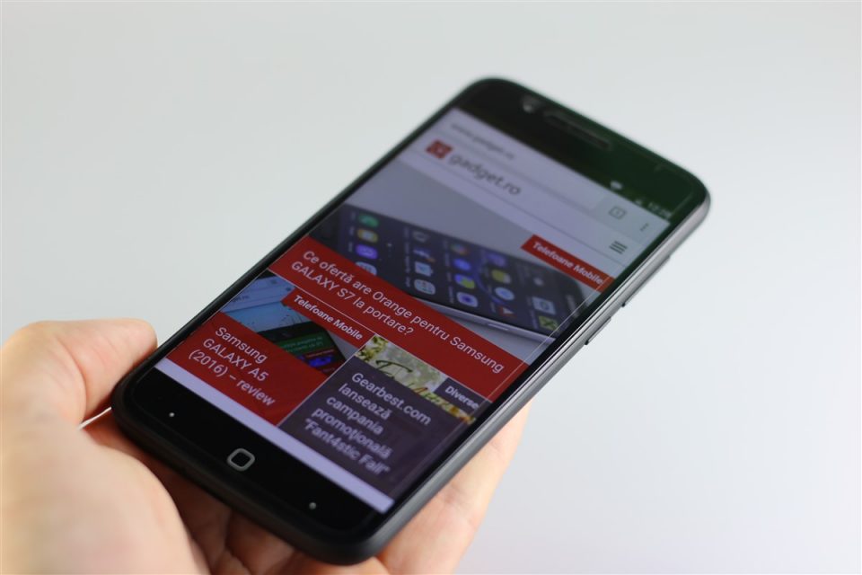 IPS LTPS de 5 inch cu rezoluție 1280×720 pixeli, 294 ppi și sticla de protecție este de tip 2.5D de la Corning Gorilla Glass. Din fabrică veți găsi montată și o folie de protecție din plastic. Au optat pentru un accesoriu foarte, foarte ieftin și calitatea sa lasă puțin de dorit. Agață și recomand să o schimbați sau să nu o folosiți deloc. Strică din feeling-ul pe care-l lasă display-ul în ce privește controlul tactil.