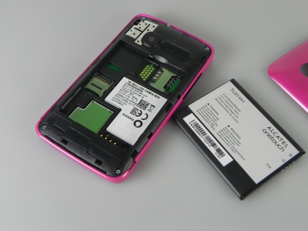 Vodafone Smart Mini este produs de către Alcatel. La exterior nu dai de vreo informație în acest sens și remarci logo-ul Alcatel când desfaci capacul ce acoperă întreg spatele smartphone-ului. Ca să ai acces la slotul pentru SIM cât și la cel pentru cardurile microSD de până la 32 GB trebuie îndepărtat acumulatorul de 1400 mAh.