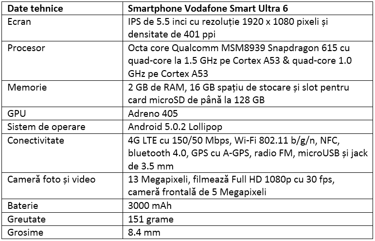 Cert este că dacă doriți un phablet cu ecran de 5.5 inci și țineți la partea de garanție, în sensul prezenței oficiale pe piața din România, Vodafone Smart Ultra 6 reprezintă poate cea mai bună soluție.