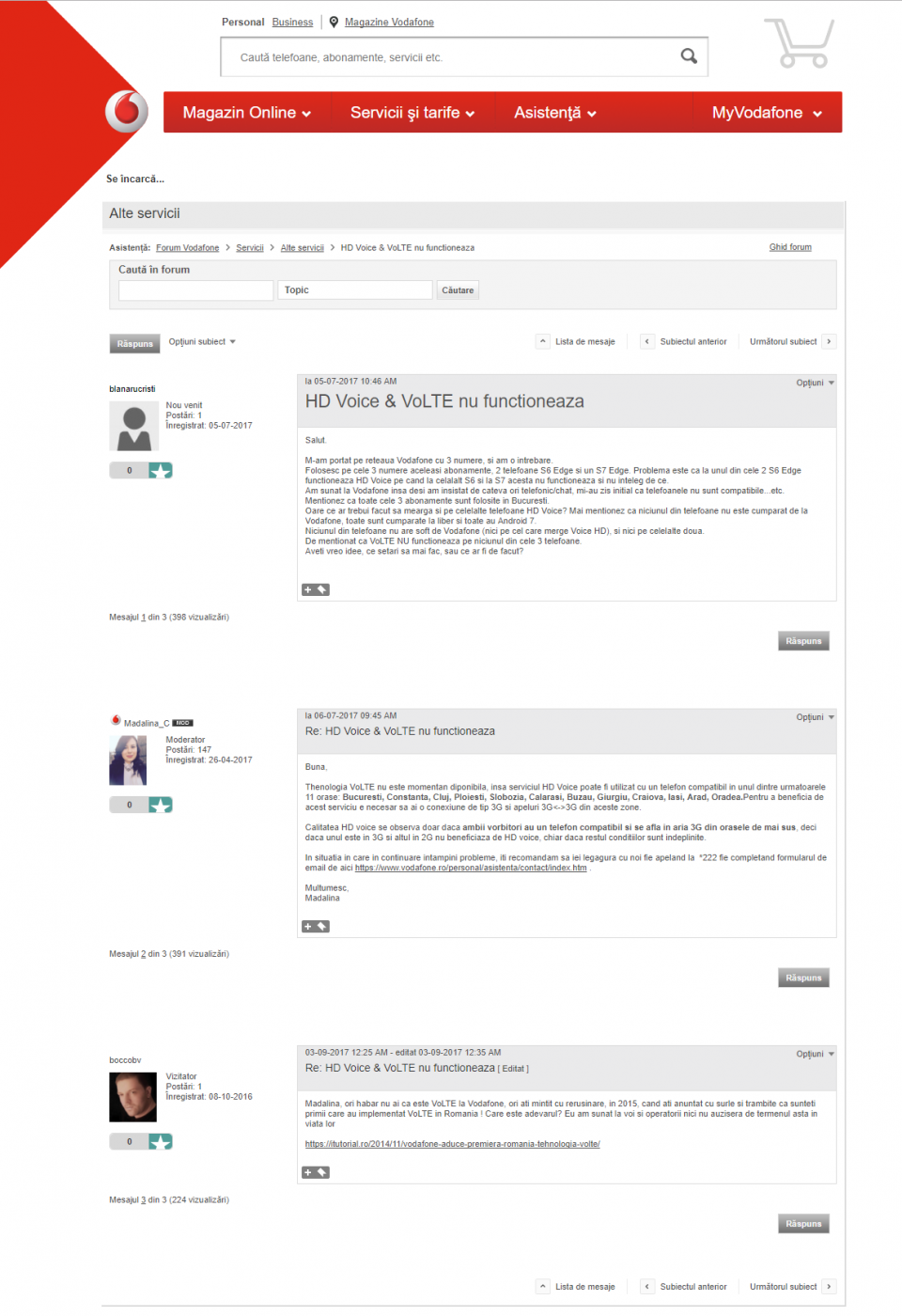 Pe forumul Vodafone este primită o întrebare din partea unui client Vodafone pe 5 iulie 2017, iar moderatorul îi răspunde (linkul nu mai funcționează, dar la un search pe Google mai apare pagina respectivă):