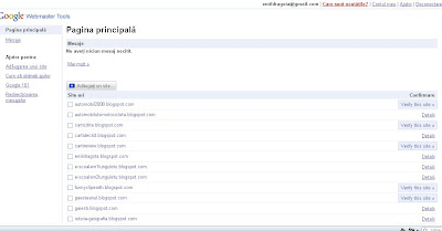 Update: La mine, pagina de Instrumente pentru webmasteri arată aiurea că trec, ocazional, pe aici şi văd că ei indexează orice mişcare care o fac pe blogger.