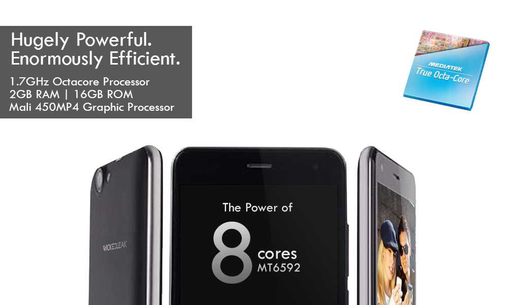 – procesor octa-core MediaTek MT6592 tactat la 1.7 GHz, accelerator grafic Mali-450MP4, 2 GB memorie RAM şi 16 GB memorie internă (oferă suport pentru card microSD de până la 64 GB);