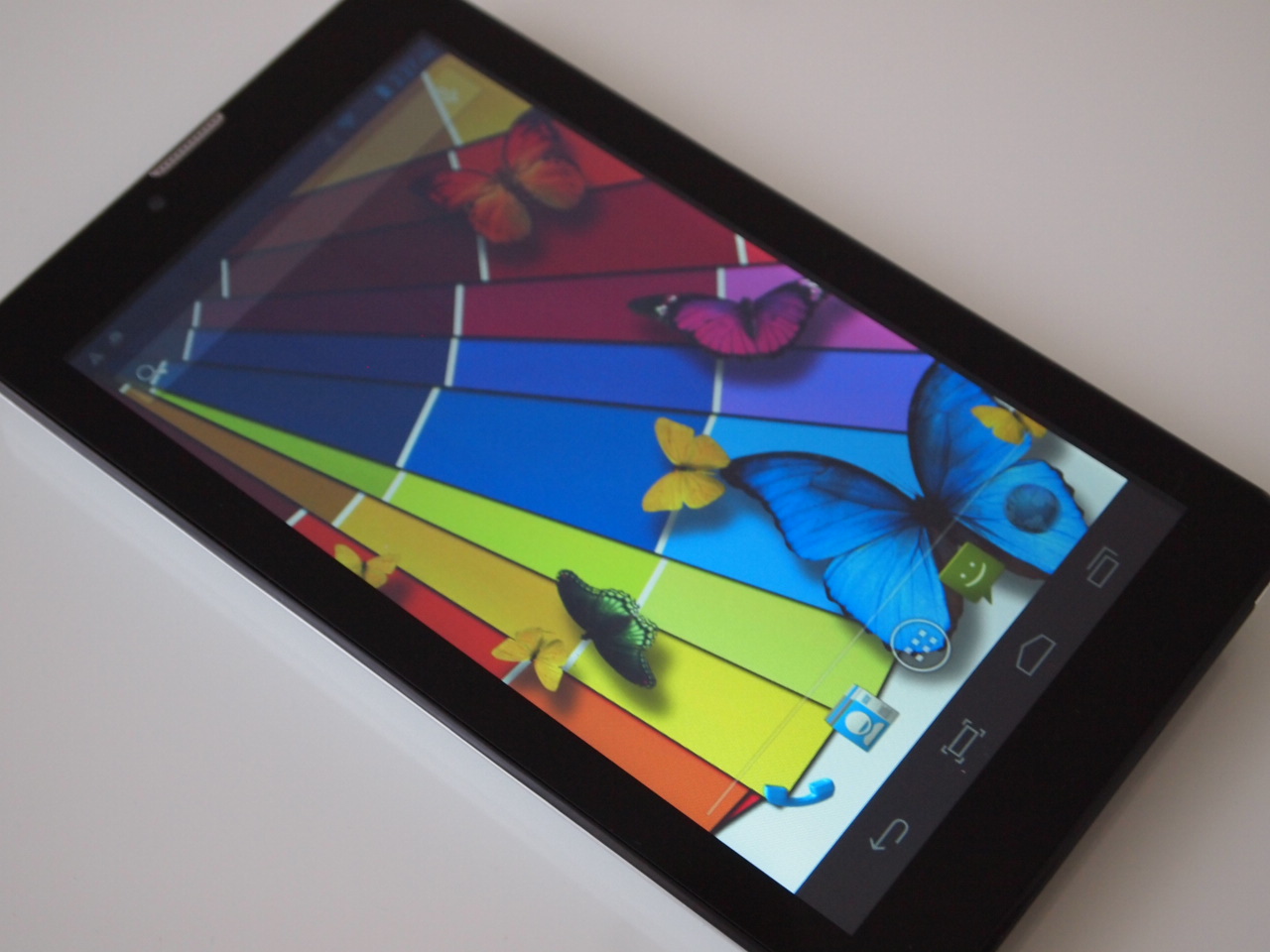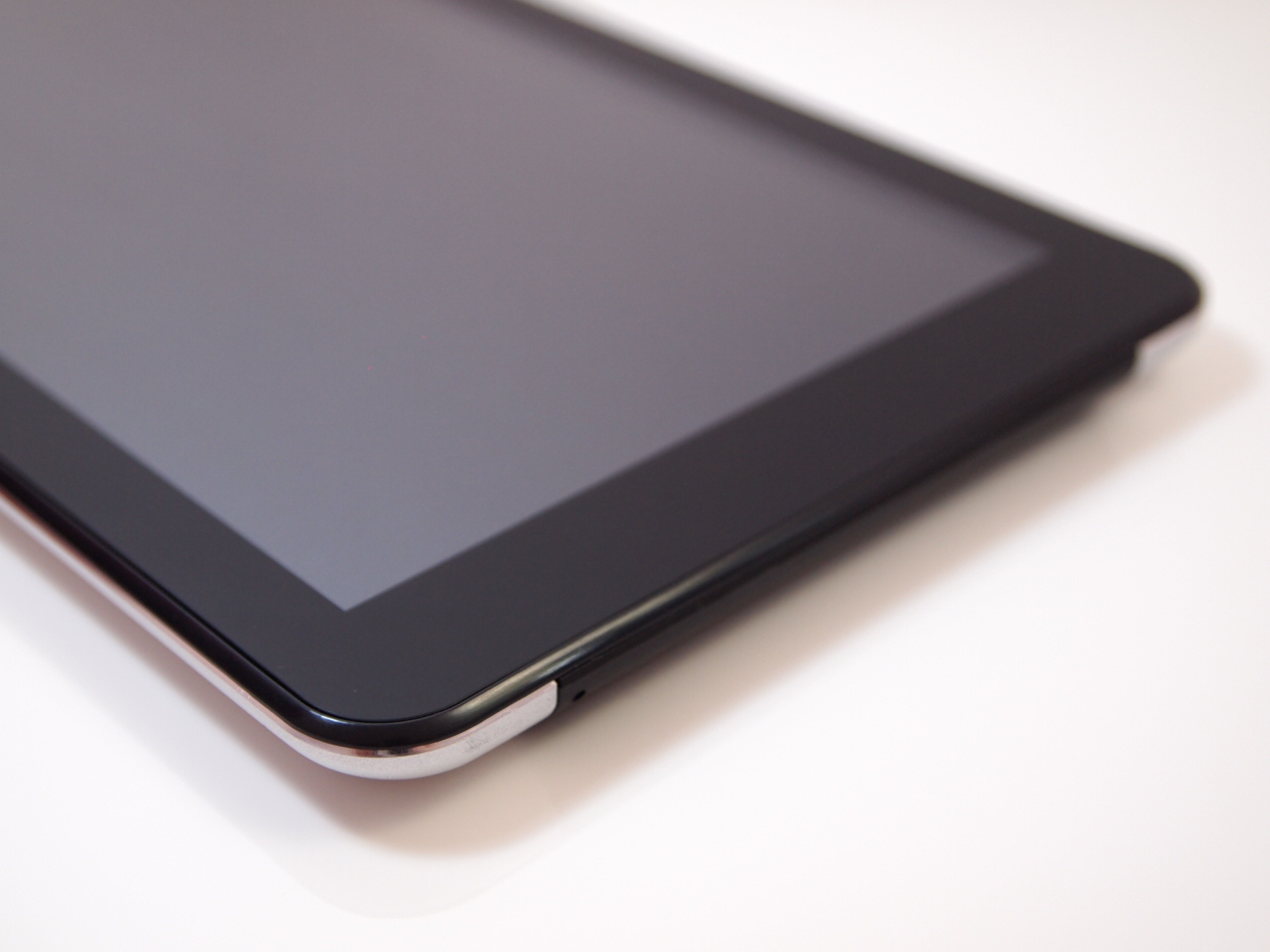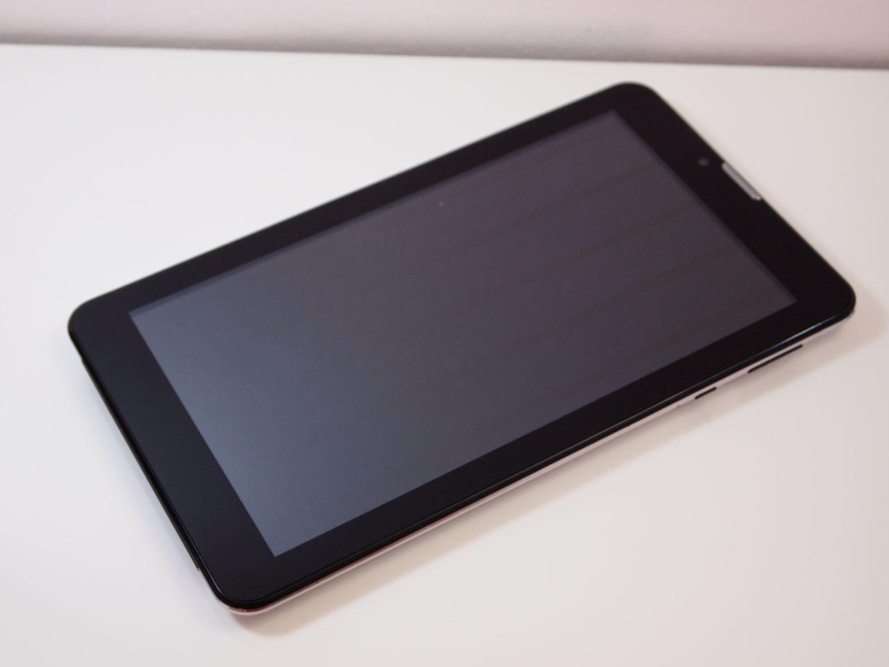 În afară de metalul folosit la construcție, tableta nu mai iese cu nimic în evidență. Partea din față, în afară de display și grila difuzorului pentru apeluri, nu ne mai atrage atenția cu niciun element. Nu există butoane capacitive la baza ecranului, acestea fiind de tip touch butons.