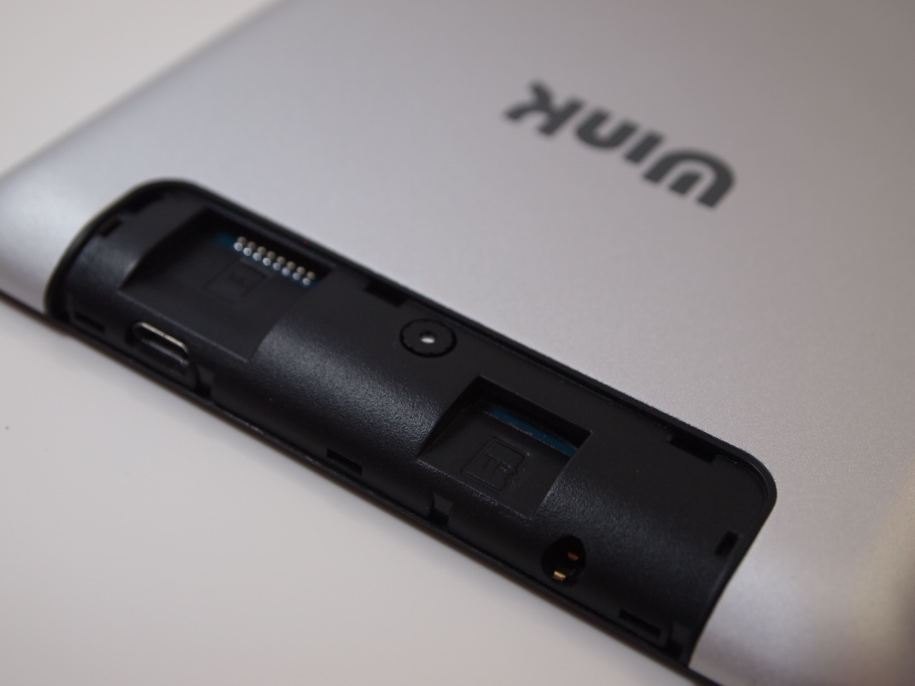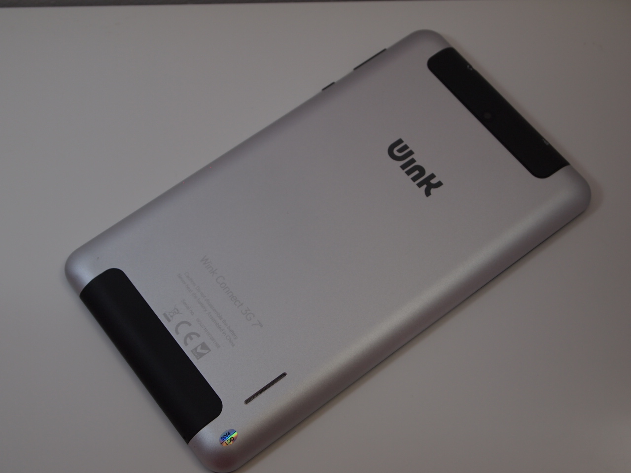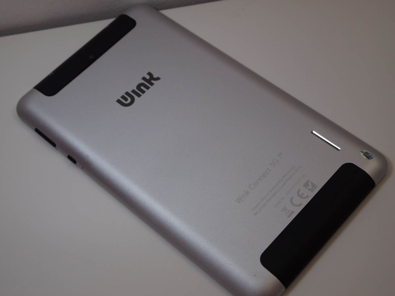 Primul lucru pe care îl observăm când scoatem tableta din pachet este faptul că Wink Connect 3G este destul de compactă, dar mai ales că spatele este realizat din aluminiu. Acesta este mat și prezintă o textură rugoasă, perfectă pentru a asigura un grip bun. Nu mă așteptam ca la acest nivel de preț să găsesc așa ceva.