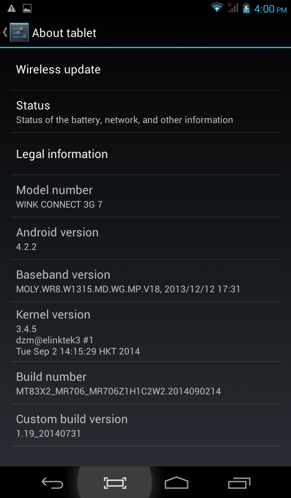 În specificațiile oferite de eMAG pentru Wink Connect 3G apare în dreptul ecranului cum că ar fi unul de tip IPS cu tehnologie OSG. Despre faptul că este IPS nu zic nimic, dar OGS (One Glass Solution) mă îndoiesc că ar fi. Pur și simplu distanța între panelul sensibil la atingere și display-ul propriu-zis este prea mare. Este posibil să fie OGS, dar nu arată ca unul și am mai întâlnit destule până acum.