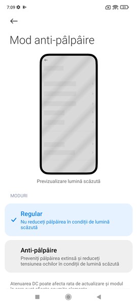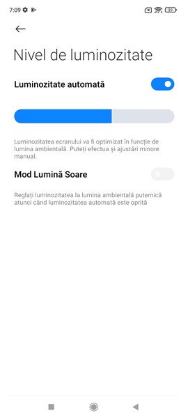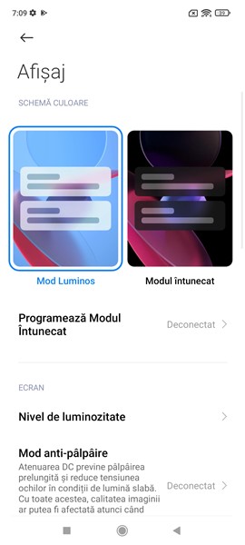 Ai și destule opțiuni pe partea de customizare. Am văzut un mod pe care nu l-am regăsit în altă parte – Mod Lumină soare (luminozitate puternică spre a păstra lizibilitata și sub acțiunea razelor solare). Sincer, nu mi s-a părut a aduce o schimbare puternică față de ce oferă cu Modul Auto, dar probabil, nu l-am testat suficient. Mai este și modul Anti-pâlpâir, Mod Citire sau Dark Mode (implementate pe majoritatea smartphone-urilor din prezent).
