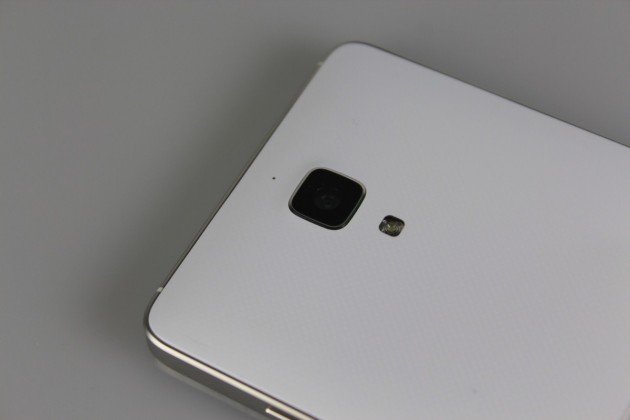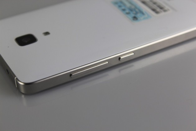 O ramă din aluminiu înconjoară telefonul și contribuie la partea de rigiditate structurală. Designul este clar preluat de la iPhone 5S, dar ușor rafinat. Aș fi spus că arată mai bine decât iPhone 5S-ul dacă plasticul alb de pe spate nu ar fi dat impresia de ieftin într-un mod atât de pregnant. Am înțeles că prin China sunt tot felul de capace și-l comanzi așa cum îți place. Vă recoman să evitați albul lucios ce adună amprentele.