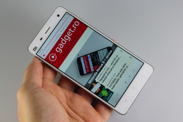 IPS de 5 inch cu rezoluție 1920×1080 pixeli, 441 ppi, protejat cu sticlă Corning Gorilla Glass. Știu că Xiaomi a colaborat cu Sharp și JDI în ce privește display-ul lui Xiaomi Mi-4. Uimește la capitolul luminozitate, unghi de vizualizare, culori afișate în mod corect. Pot să spun că ecranul mi-a plăcut de la prima bootare a lui Mi-4.