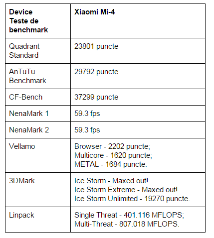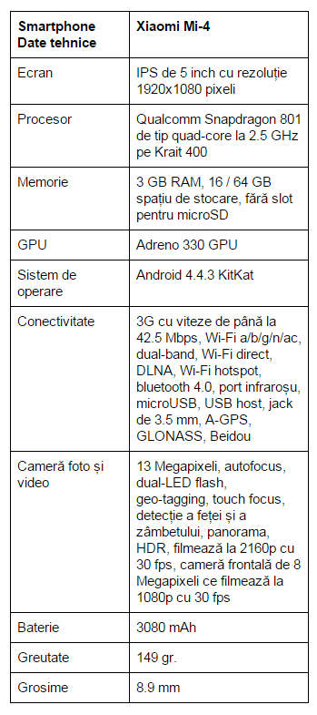 Încep cu datele hardware complete pentru Xiaomi Mi-4: