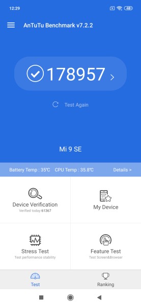 Teste de benchmark rulate pe Xiaomi Mi 9 SE;