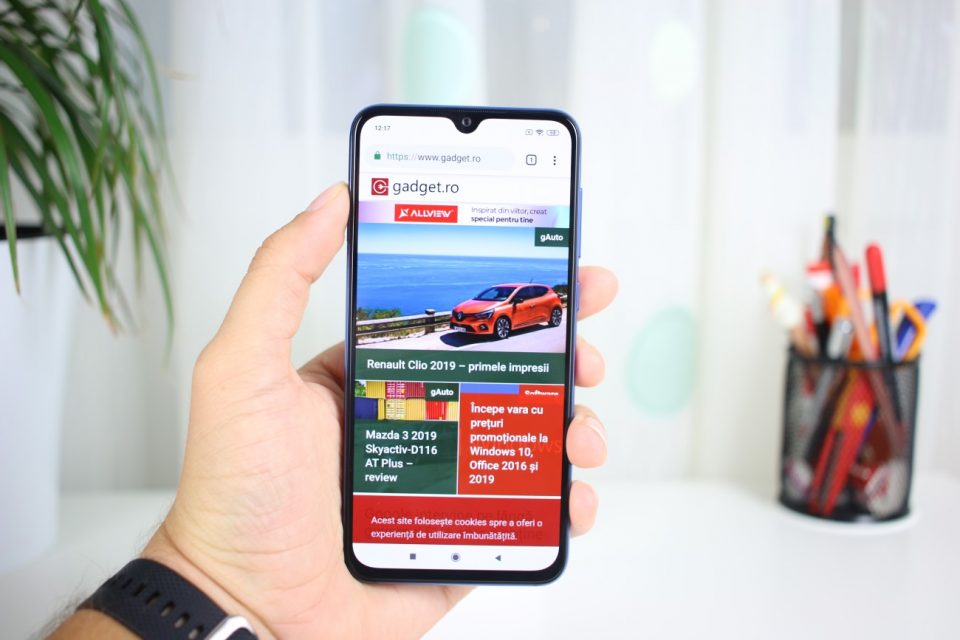 Bateria liliputană de 3070 mAh este salvată de ecranul cu panel Super AMOLED, rezoluție Full HD+ și diagonală de aproape 6 inch, dar și de eficientizarea în ce privește consumul de energie oferită de ansamblul hardware (Qualcomm Snapdragon 712 + Adreno 616).