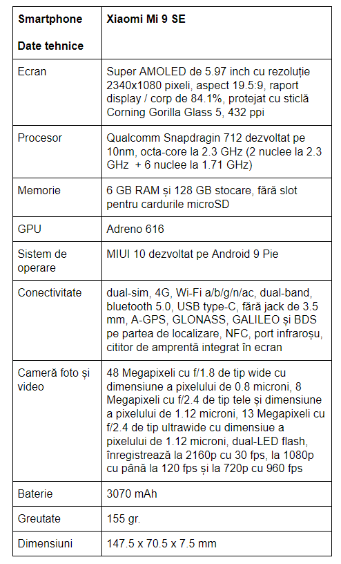 Xiaomi Mi 9 SE este o propunere solidă în segmentul mid-range superior, un competitor de seamă pentru Huawei P30 Lite sau Samsung GALAXY A50.
