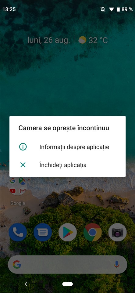 Mai mult, aplicația camerei de pe Xiaomi Mi A3 se închidea imediat ce încercam să comut pe camera frontală: