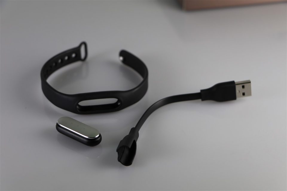 În pachet dați de tracker, cureaua din policarbonat, încărcător pentru bateria de 45 mAh a tracker-ului – fir lat pentru încărcător vs fir convențional la generația precedentă fără senzor optic, ghid cu instrucțiuni în limba chineză.