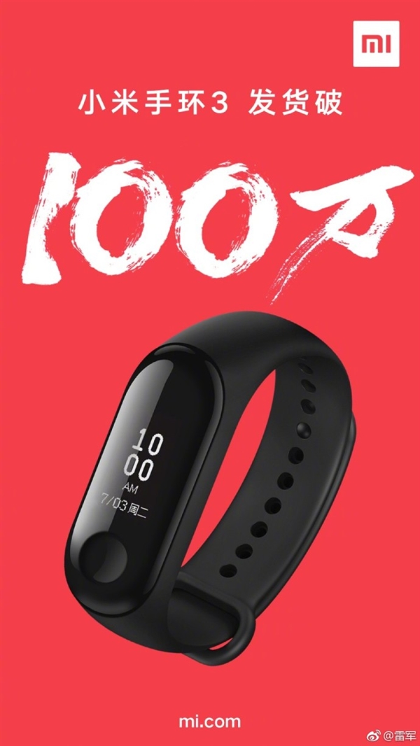 Xiaomi Mi Band 3 se vinde ca pâinea caldă şi chiar dacă nu are încă o lună de la prezentarea oficială, numărul de unităţi vândute a depăşit deja cifra de 1 milion. Fondatorul Xiaomi, Lei Jun, a anunţat pe contul său Weibo că brăţara a atins această bornă în doar 17 zile, record pentru un astfel de gadget.