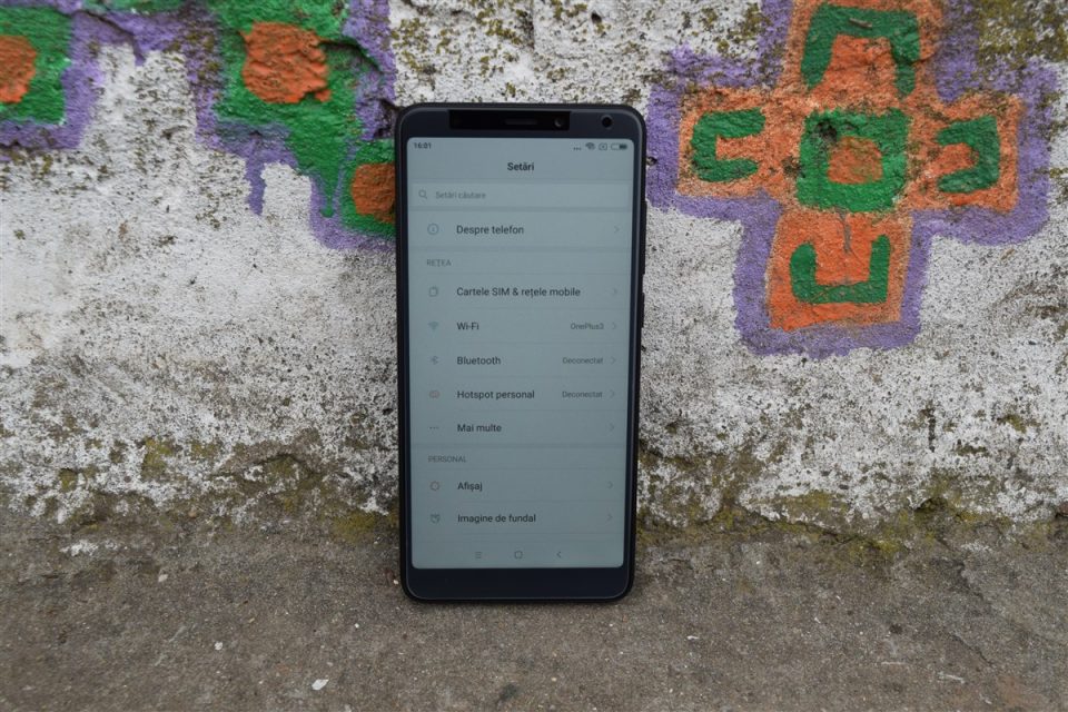Chiar dacă vorbim de un ecran cu aspect 18:9, Xiaomi nu a reuşit să scape de benzile negre laterale destul de inestetice. Aceste benzi se văd mult mai urât pe celelalte culori, de aceea recomand celor interesaţi de acest model să achiziţioneze versiunea neagră pentru că benzile respective se integrează cumva în restul corpului şi nu mai par atât de evidente.