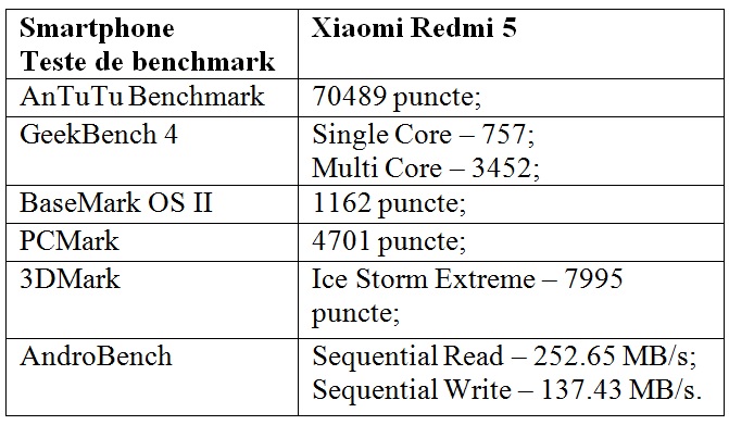 Iată ce rezultate a obţinut Xiaomi Redmi 5 în testele de benchmark: