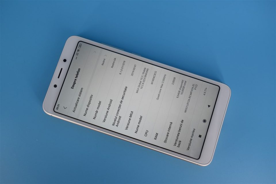 Xiaomi Redmi 6A vine cu MIUI 10.2 Global bazat pe Android 8.1 Oreo. Xiaomi a promis că într-un viitor update vom trece chiar la o versiune superioară de Android şi sper să mai optimizeze câteva ceva, atât cât este posibil. Chiar dacă actuala versiune de MIUI este mult mai reuşită, mai puţin consumatoare de resurse, procesorul integrat pe acest telefon nu este capabil să o ruleze fin. În permanenţă avem parte de întârzieri în răspuns, interfaţa se mişcă greu, iar pentru multitasking ai nevoie de nervi tari.