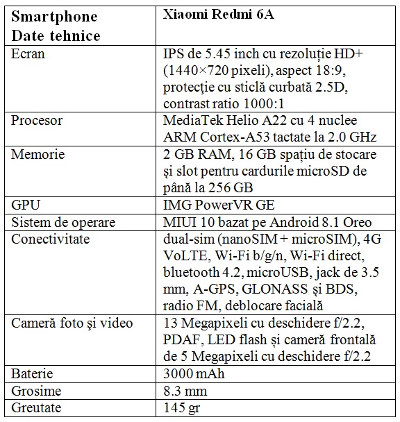Xiaomi Redmi 6A la nivel teoretic este un device ultra low-cost, simplu, fără pretenţii, dedicat începătorilor, celor care vor un telefon inteligent cu funcţii minime, celor care au buget foarte redus sau chiar celor trecuţi de o anumită vârstă care vor să încerce puţin din tehnologia actualei generaţii de tineri.