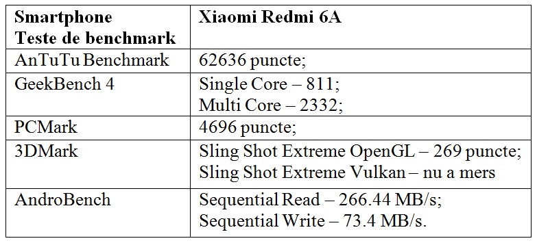 Iată şi ce rezultate a obţinut Xiaomi Redmi 6A în testele de benchmark: