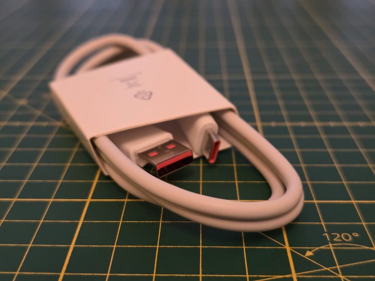 În pachet se află smartphone-ul, cablul de tip USB – USB Type-C, agrafă pentru cele două cartele de tip nanoSIM și o husă de protecție din plastic cauciucat.