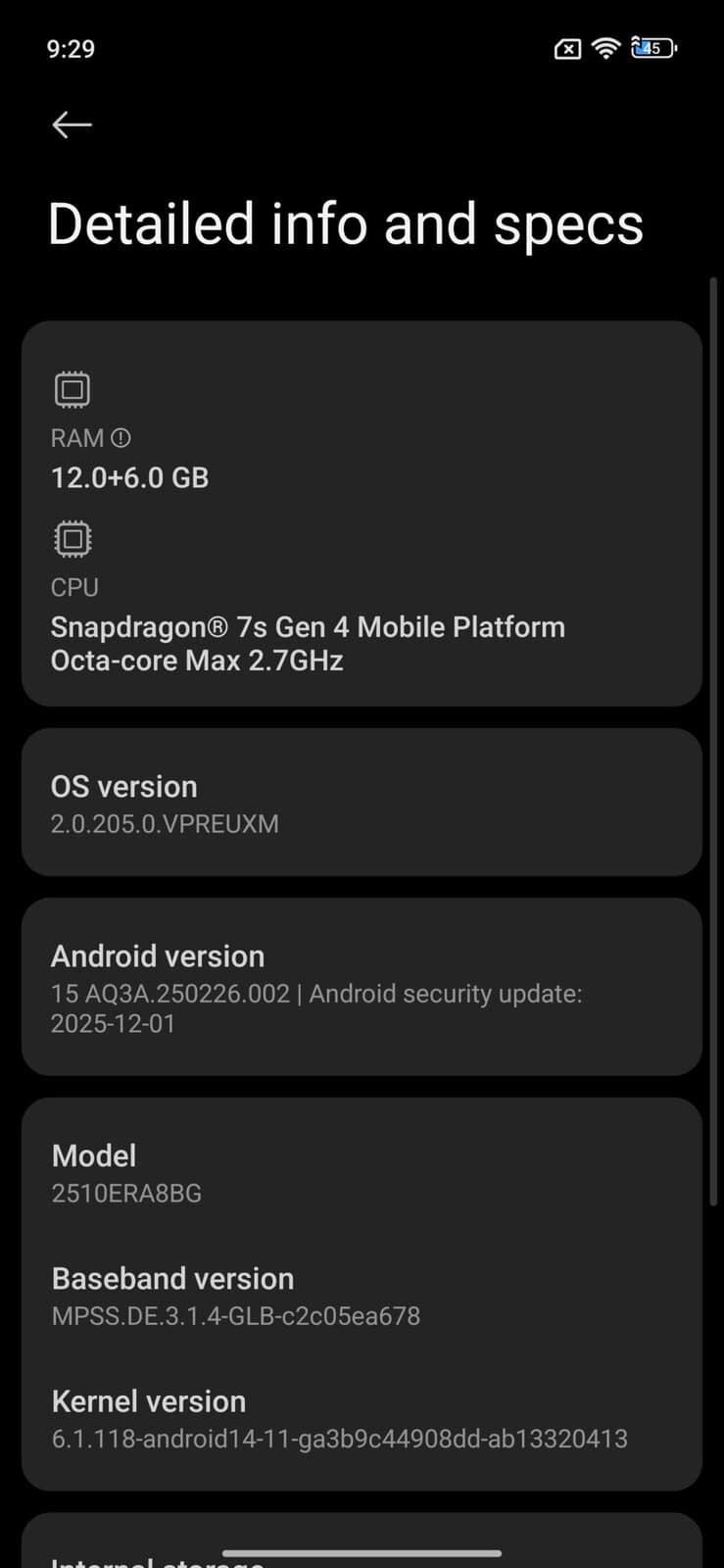 | Procesor | Qualcomm Snapdragon 7s Gen 4 pe 4nm, octa-core cu 1 x Cortex-A720 la 2.7 GHz, 3 x Cortex-A720 la 2.4 GHz, 4 x Cortex-A520 la 1.8GHz |