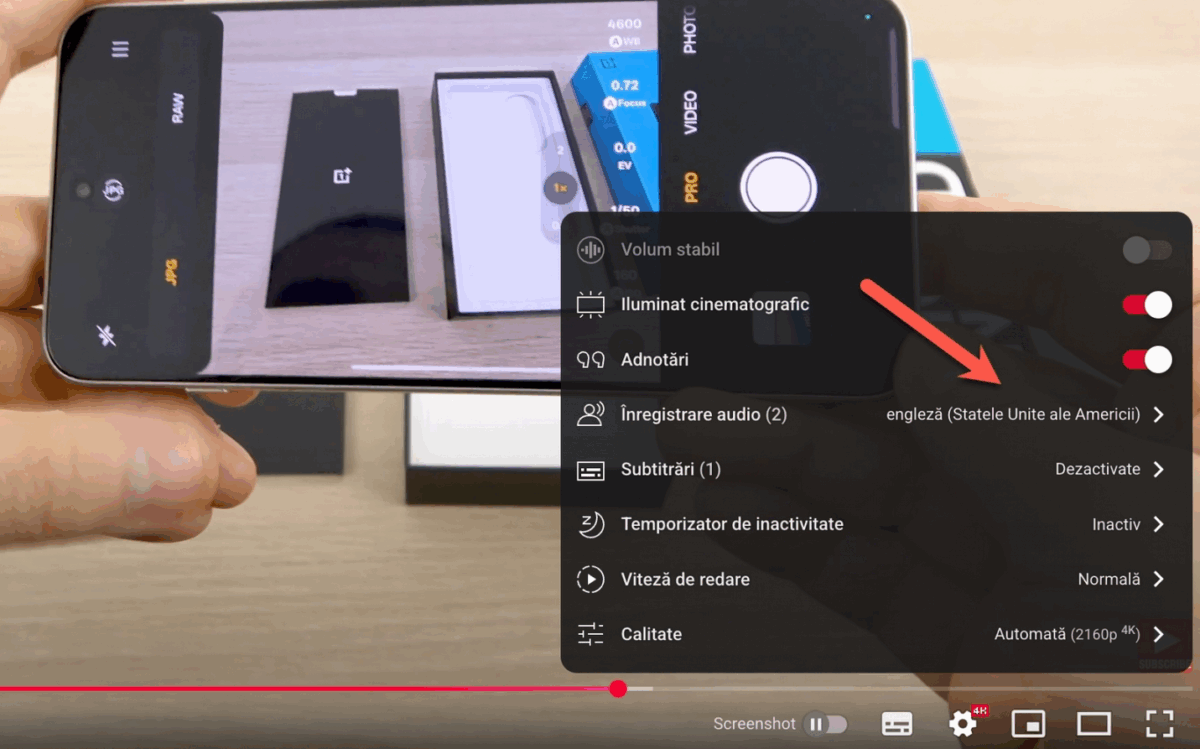 Pentru a activa dublarea în limba engleză, intraţi în Setări – Înregistrare Audio – Engleză (Statele Unite ale Americii). Pentru a reveni la vocea originală, respectaţi aceeaşi paşi, doar că la final selectaţi limba română.