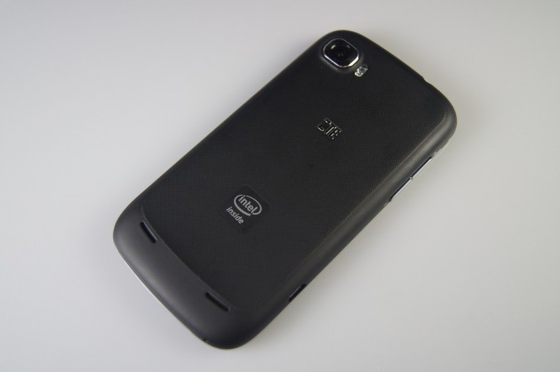Capacul acoperă tot spatele, are mici protuberanțe ce contribuie la un grip ceva mai bun, dar în partea negativă se află marginile destul de groase și rotunjite, metalice. Este un smartphone cu greutate pentru cei 4.3 inch ai săi, 140 gr. și o destul de gros cu 9.9 mm. Până și Samsung Galaxy S din 2010 stătea mai bine la acest capitol. Puteau să-l facă ceva mai slim și mai ușor. Când îl strângi în mână nu scoate niciun sunet, dovada că este bine închegat, solid. Per total, nu-i un telefon urât, dar nici nu aduce vreun artificiu de stil care să te impresioneze. În partea frontală au ales să nu pună vreun logo ci doar pe spate unde remarci sigla ZTE și logo-ul Intel Inside ce arată proveniența soluției la nivel de CPU + GPU