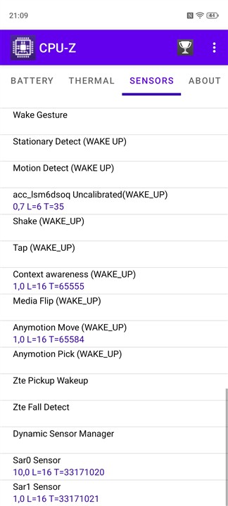 Capturi de ecran din aplicația CPU-Z cu informații despre ZTE nubia Air:
