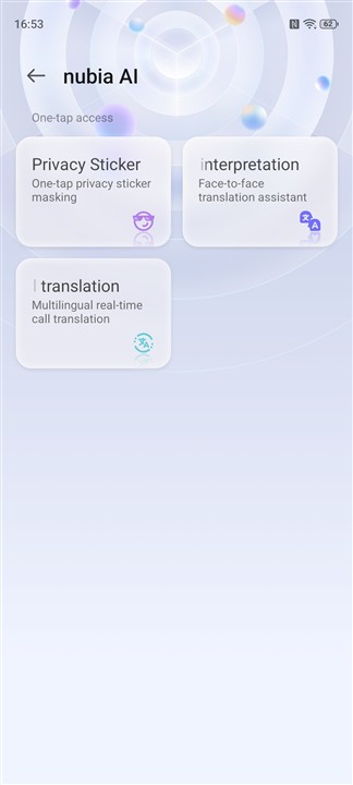 Apar, așa cum este deja tradițional la orice producător, funcții AI. Aici sunt cele precum traducere automată face-to-face și chiar în timpul apelurilor, unde am găsit disponibilă inclusiv limba română. Totodată, poți activa funcția de subtitrare text pentru convorbirile telefonice. Ca și în alte cazuri, aceste funcții sunt folositoare, fără discuție, dar nu sunt mereu cel mai bine implementate și nu funcționează fără reproș, nici pe departe… Dar, repet, acesta nu este cazul doar pentru ZTE nubia Air, ci pentru mai toate implementările cu care am luat eu contact.