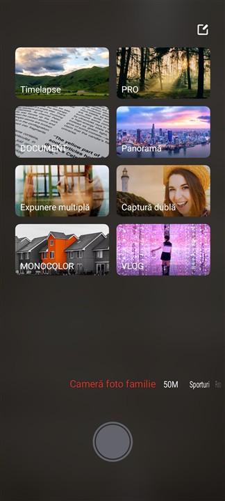 Aplicația Camera de pe ZTE nubia Air are un aranjament comun, deși aș spune că se detașează ușor în lumea Android, chiar dacă nu face asta decât poate prin ceva fonturi mai deosebite. Funcțiile adiționale nu le regăsim într-un meniu poziționat către partea din dreapta a modurilor de captare, ci spre stânga, în meniul tradus cam sec „Cameră foto familie”. Aici sunt modurile Timelapse, PRO, Document, Panoramă, Expunere multiplă, Captură dublă, Monocolor și Vlog. Nimic deosebit, dar moduri cu care poți deveni ceva mai creativ.