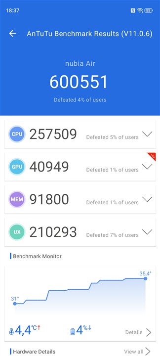 | Teste benchmark Smartphone | ZTE nubia Air |