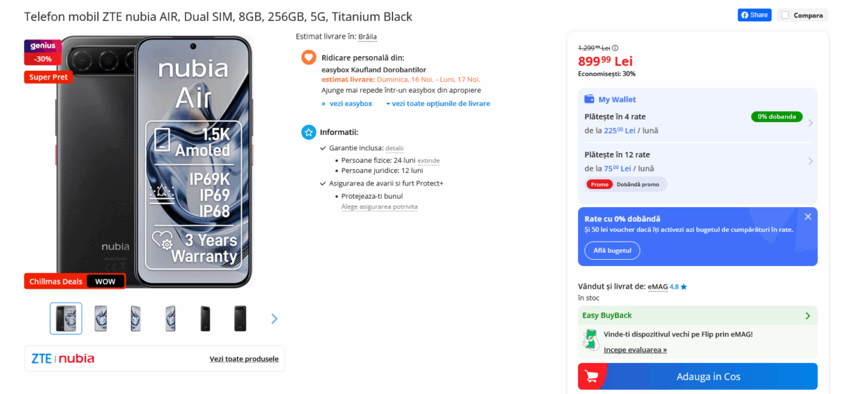 Dacă vă interesează acest device, aflaţi că ZTE Nubia Air este disponibil pe canal oficial în România la un preţ de 899 lei. Sigur că avem un procesor modest, însă nu pot fi toate perfecte.